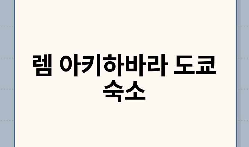 도쿄 아키하바라 여행을 계획 중이신가요? 수많은 숙소 중에서도 뛰어난 접근성과 편안한 휴식을 제공하는 ‘렘 아키하바라’ 호텔은 여행자들에게 꾸준히 사랑받는 곳입니다. 이 글에서는 렘 아키하바라의 위치부터 객실 특징, 예약 팁까지, 여러분의 도쿄 여행을 더욱 완벽하게 만들어 줄 실용적인 정보를 상세하게 알려드리겠습니다. 지금부터 렘 아키하바라에 대한 모든 궁금증을 해결해 보세요!