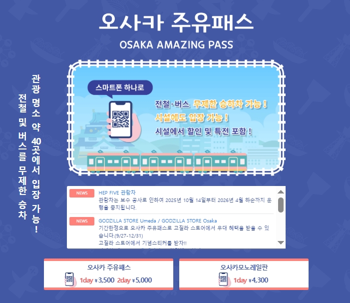 오사카 주유패스 혜택 구매 방법 사용처 관광지 할인 대중교통 이용 방법기준 managerwp2025년 01월 18일오사카 주유패스는 일본 오사카를 여행하는 많은 관광객들에게 매우 유용한 교통 카드입니다. 이 패스를 사용하면 대중교통을 쉽게 이용할 수 있을 뿐만 아니라, 많은 유명 관광지에 대한 입장료를 할인받을 수 있는 혜택도 누릴 수 있습니다. 일본의 도시를… 오사카 주유패스 혜택 구매 방법 사용처 관광지 할인 대중교통 이용 방법