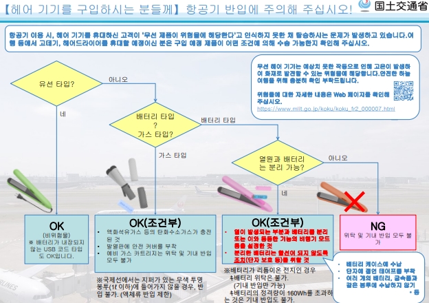일본여행 무선고데기 반입기준 2025 (일본 국토교통성 자료기반)기준 managerwp2023년 09월 12일일본여행 무선고데기 일본여행 후기를 보다보면 종종 무선고데기를 가지고 갔다가 일본에서 한국으로 돌아올 때 압수되었다는 얘기들이 들리곤합니다. 무선고데기의 경우 한국 항공사에서는 기내반입으로 허용하는 경우가 많아 가지고 나가는 것 까지는 문제가 없지만, 일본 출발 항공기의 경우 일본… 일본여행 무선고데기 반입기준 2025 (일본 국토교통성 자료기반)