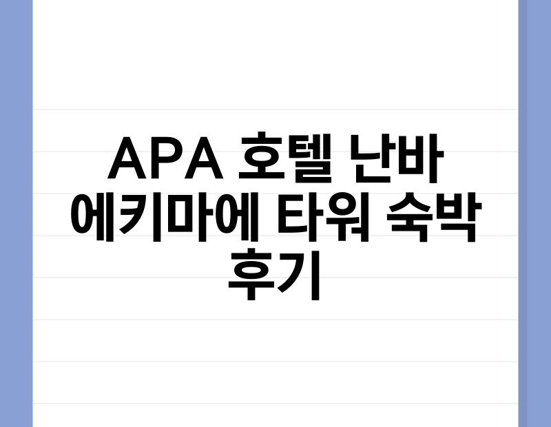 APA 호텔 난바 에키마에 타워 숙박 후기기준 managerwp2025년 11월 14일2025년 11월 12일오사카 여행을 계획하며 숙소 선정에 고민이 많으신가요? 특히 접근성 좋은 난바 지역에서 깔끔하고 편리한 호텔을 찾고 있다면, APA 호텔 앤 리조트 오사카 난바 에키마에 타워가 좋은 선택지가 될 수 있습니다. 이 글에서는 난바역 바로 앞에… APA 호텔 난바 에키마에 타워 숙박 후기