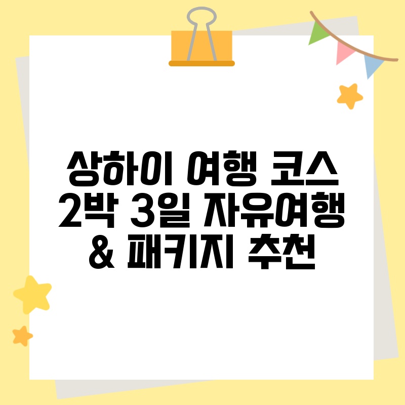 상하이 여행 코스 2박 3일 자유여행 & 패키지 추천기준 managerwp2025년 07월 24일2025년 07월 22일상하이 여행을 2박 3일 동안 알차게 즐기고 싶으신가요? 세련된 도시 풍경과 매혹적인 야경, 그리고 다채로운 문화 체험까지, 짧은 시간에도 최대한 많은 것을 보고 느끼고 싶은 여러분의 마음을 충족시켜 줄 완벽한 상하이 여행 계획을 제시합니다. 이… 상하이 여행 코스 2박 3일 자유여행 & 패키지 추천